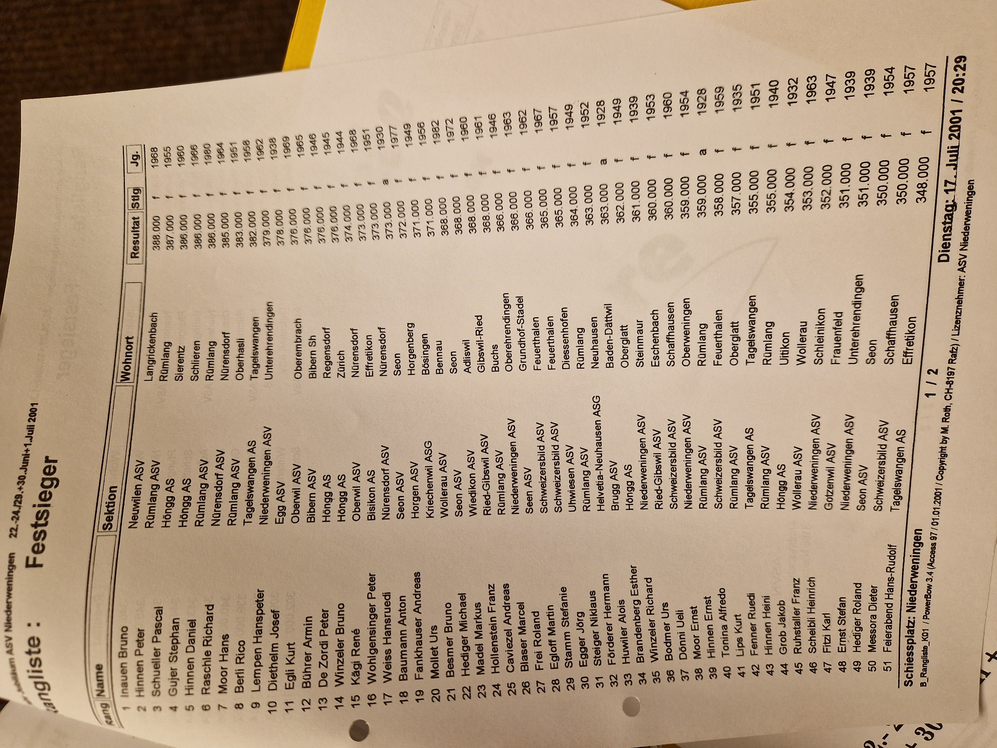 Zentralschweizer ASF Ettiswil - Kurt 21. Fest 584 / Gruppe 34.