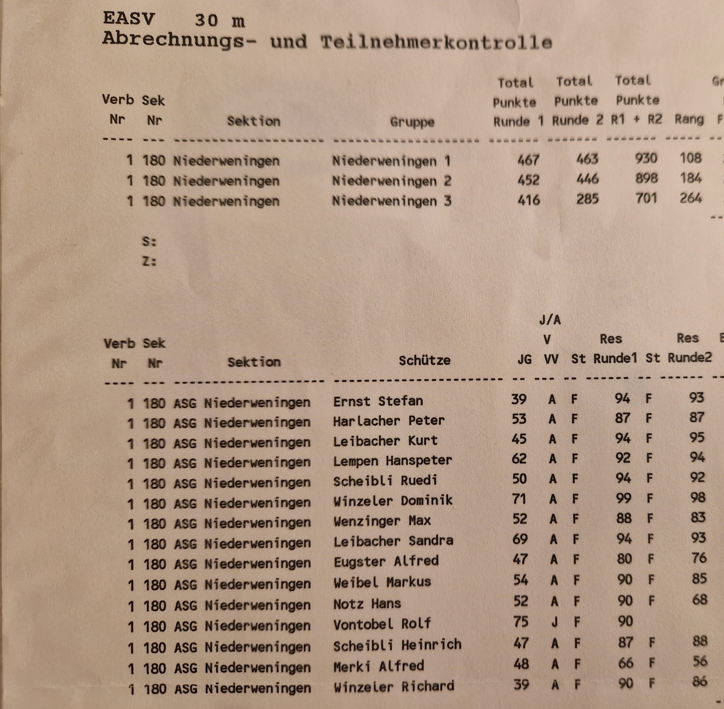 In den Neunzigern erzielt Dominik Winzeler nationalteamverdächtige Ergebnisse, Die Sektion schiesst zeitweise in der 1. Kategorie.