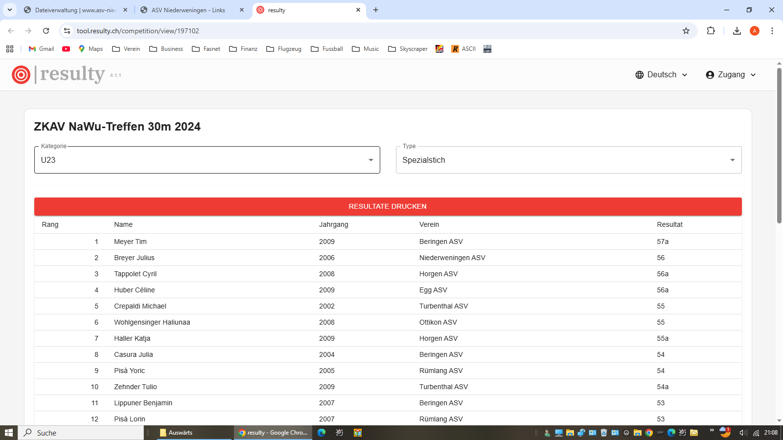 Gruppenwettkampf Kanton - Julius/Philipp/Ani-Stella 5., Julius Tagesbest U23